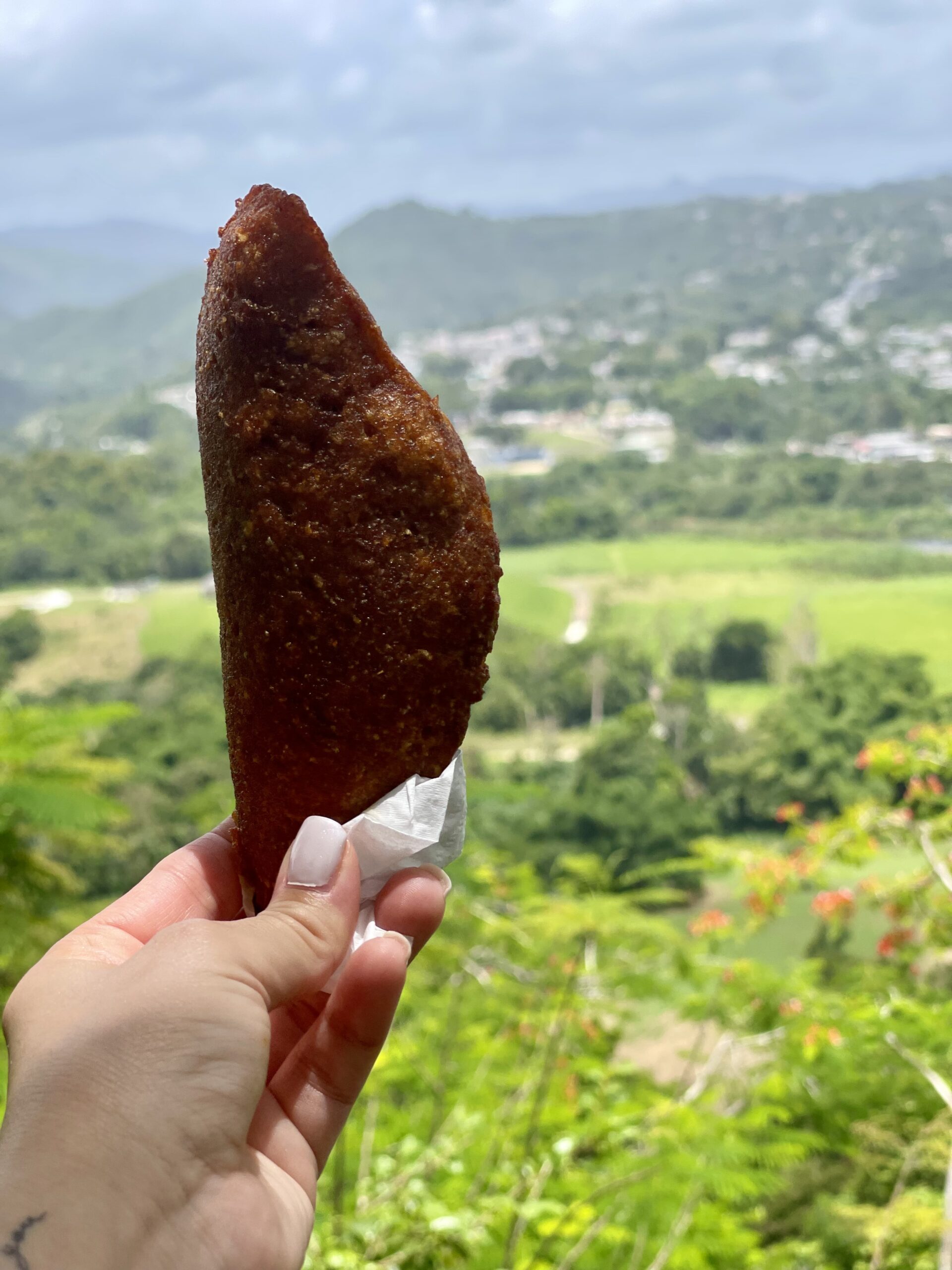 During my visit last visit to Puerto Rico I explored Ciales to uncover the essence of her childhood. My journey was filled with breathtaking scenery, as lush mountains framed the horizon and valleys unfolded like a vibrant tapestry. The long road led me to Paseo Lineal Juan Antonio Corretjer, a scenic overlook that showcased the beauty of Ciales, a spot known for various famous food trucks that offer a variety of delightful culinary treats. I enjoyed crispy alcapurrias and refreshing piña coladas that tasted delicious, each bite transporting me closer to the memories of my grandmother. I’m a lover of all gastronomy but nothing delights my belly and soul like traditional Puerto Rican cuisine.
